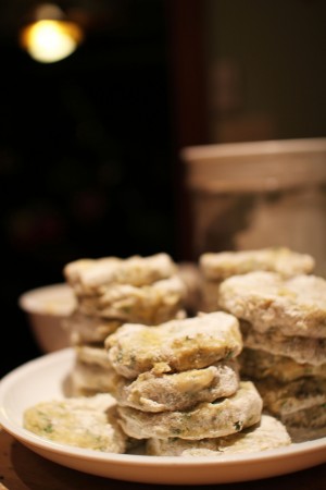 I flattened them into patties. Which was kind of a chore with all of the potato chunks actin’ all crazy.